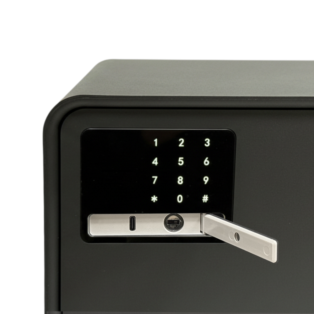 Комбинированная разблокировка: электронный пароль, механический ключ.